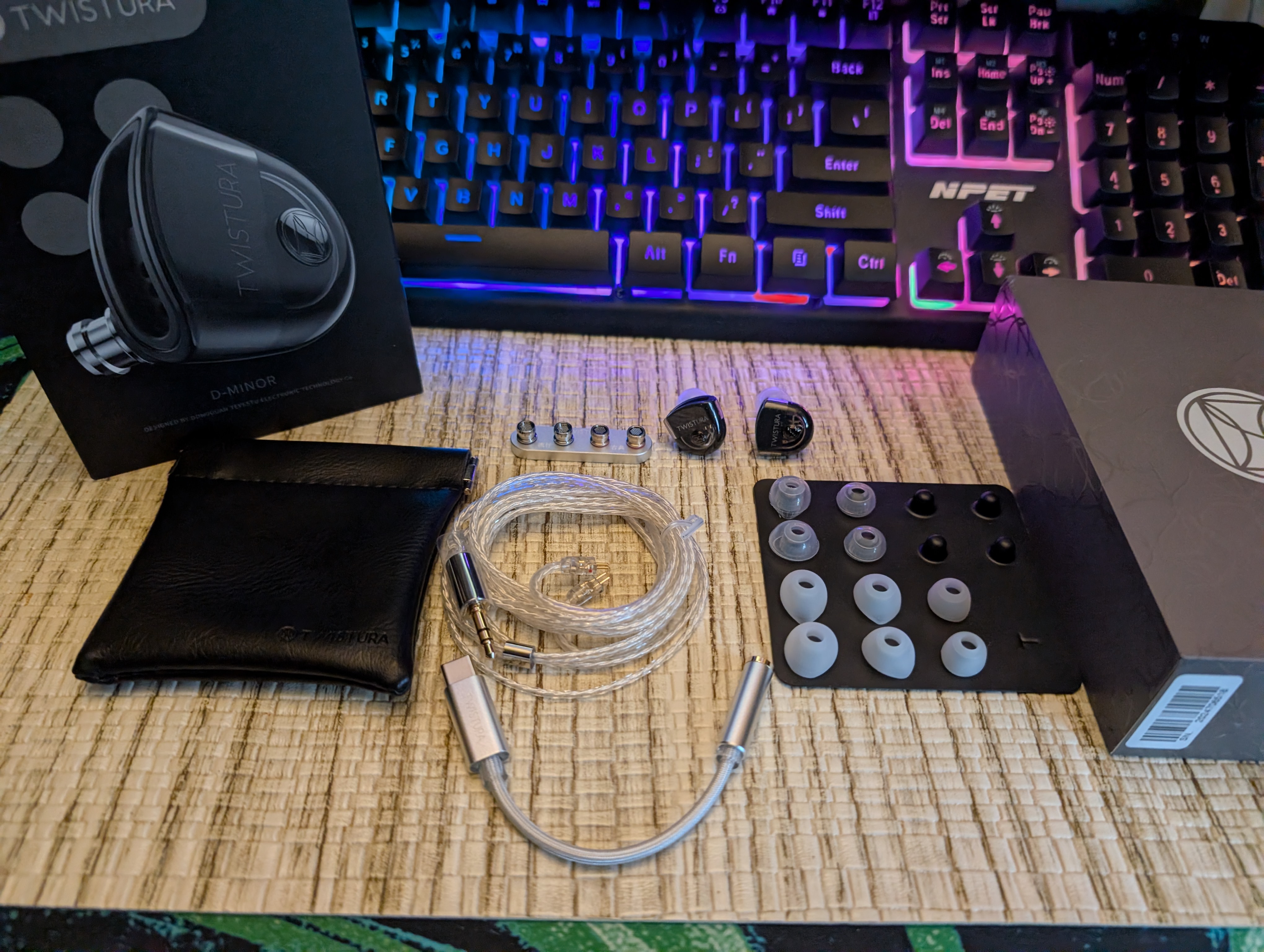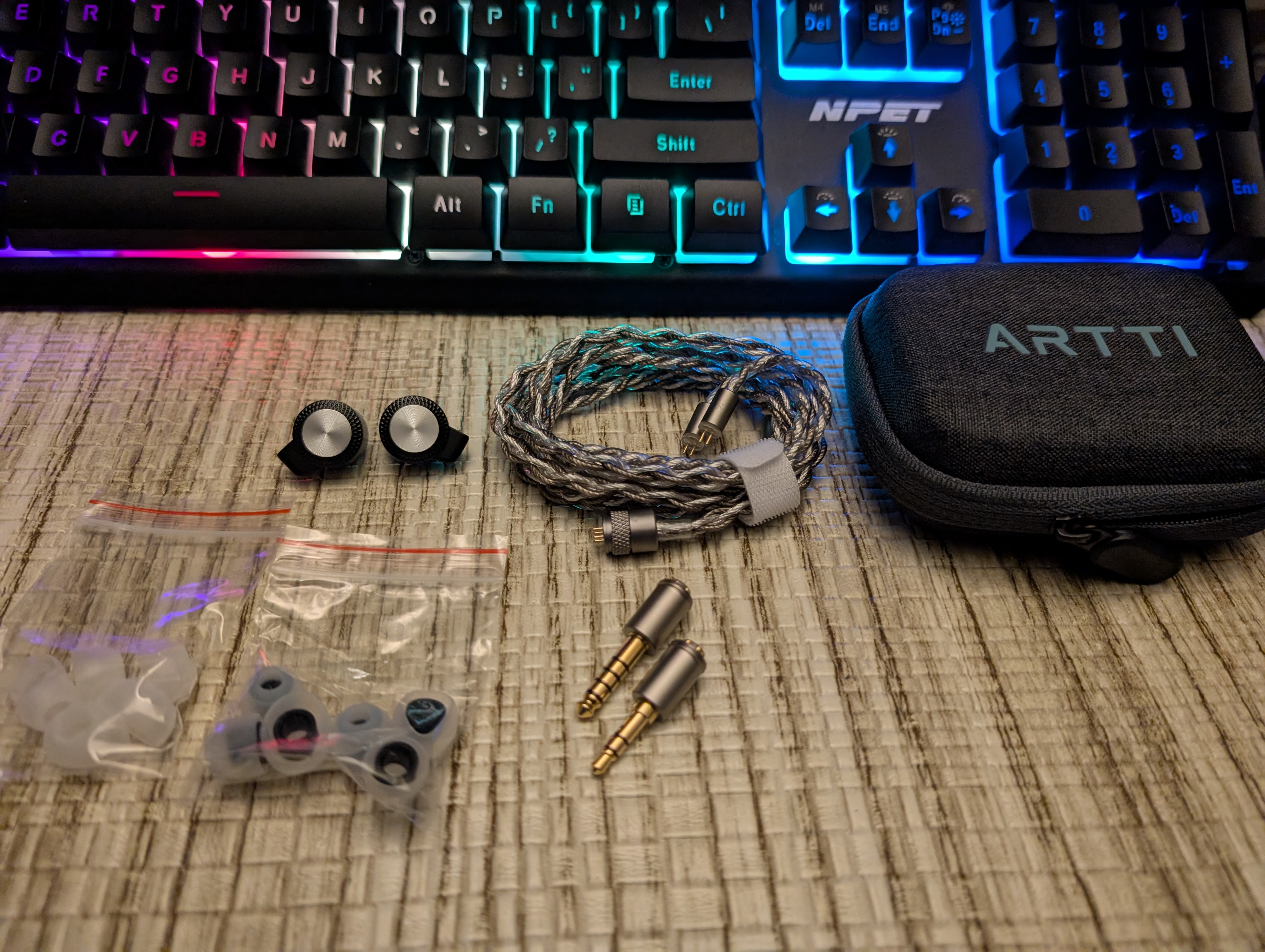 The Air5 Pro+ features a sleek stem-style design with a matte black finish and gold accents, giving them a premium look. Weighing very little, they are lightweight and comfortable for extended wear. The earbuds come with three sizes of ear tips to ensure a secure fit, which is crucial for effective noise cancellation and overall comfort during use.